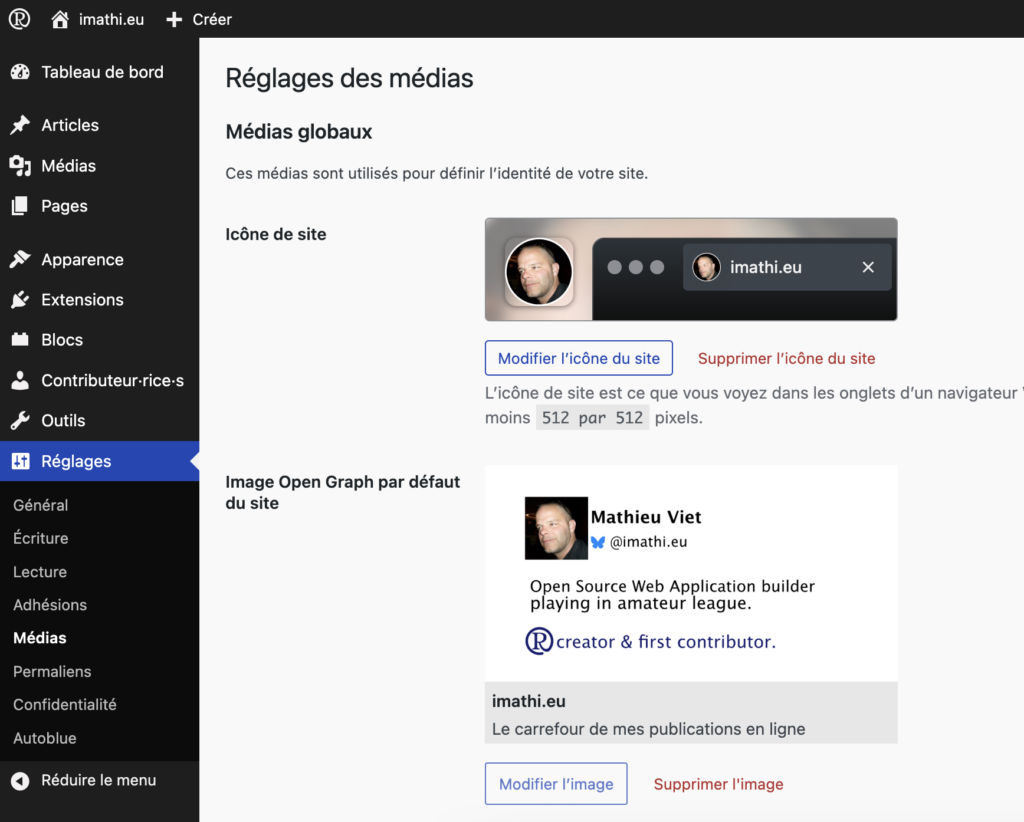 Le nouvel Ă©cran propose un mĂ©canisme clair et moderne pour dĂ©finir lâimage Open Graph par dĂ©faut du site. Cela permet dâĂ©viter les comportements implicites ou les solutions dĂ©tournĂ©es.